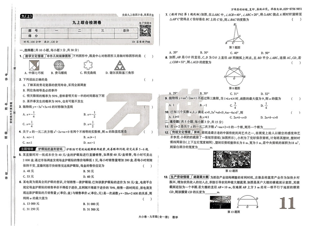 时间:120分钟 / 总分:120分/ 栏目:九年级数学上2025-12-04 20:51:47