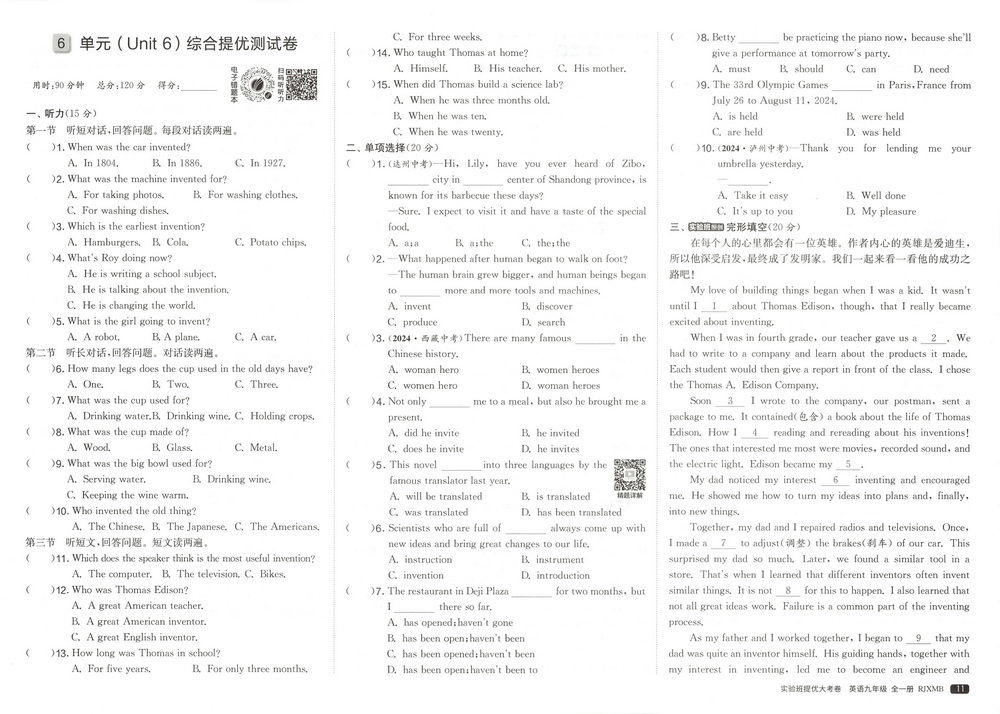 时间:120分钟 / 总分:120分/ 栏目:九年级英语上2025-12-07 19:53:18