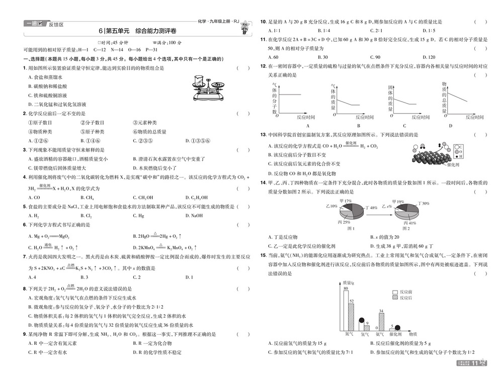 上一篇:人教版九年级上册化学第五单元测试卷四