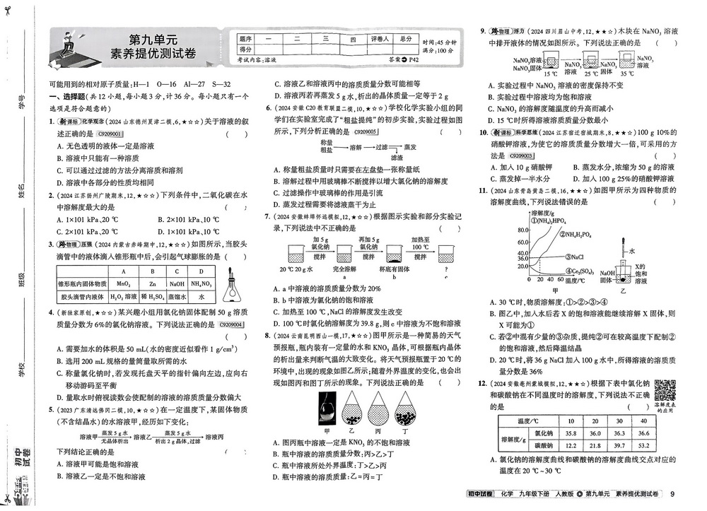 时间:120分钟 / 总分:120分/ 栏目:九年级化学下2025-12-09 20:44:14