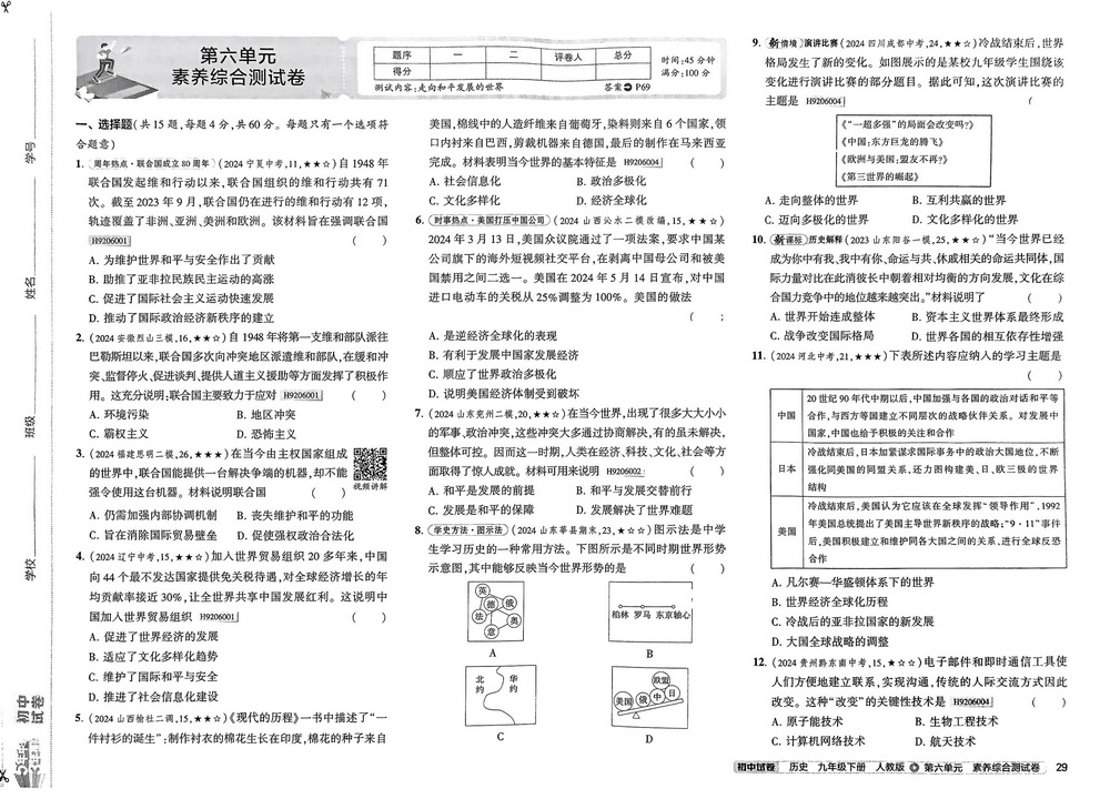 上一篇:人教版九年级下册历史第六单元测试卷九