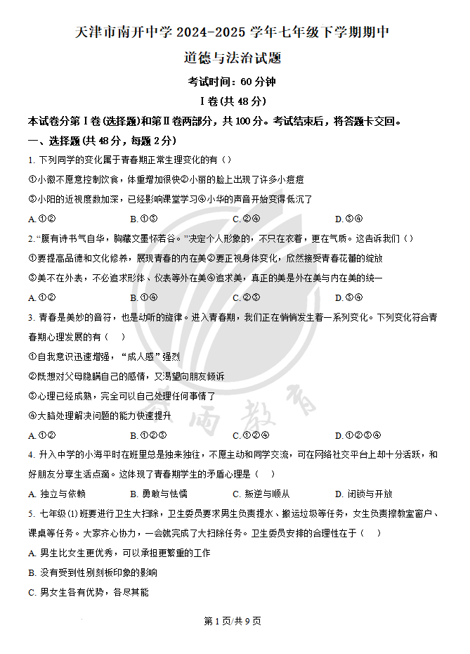 时间:120分钟 / 总分:120分/ 栏目:七年级道法历史2026-04-05 18:28:38