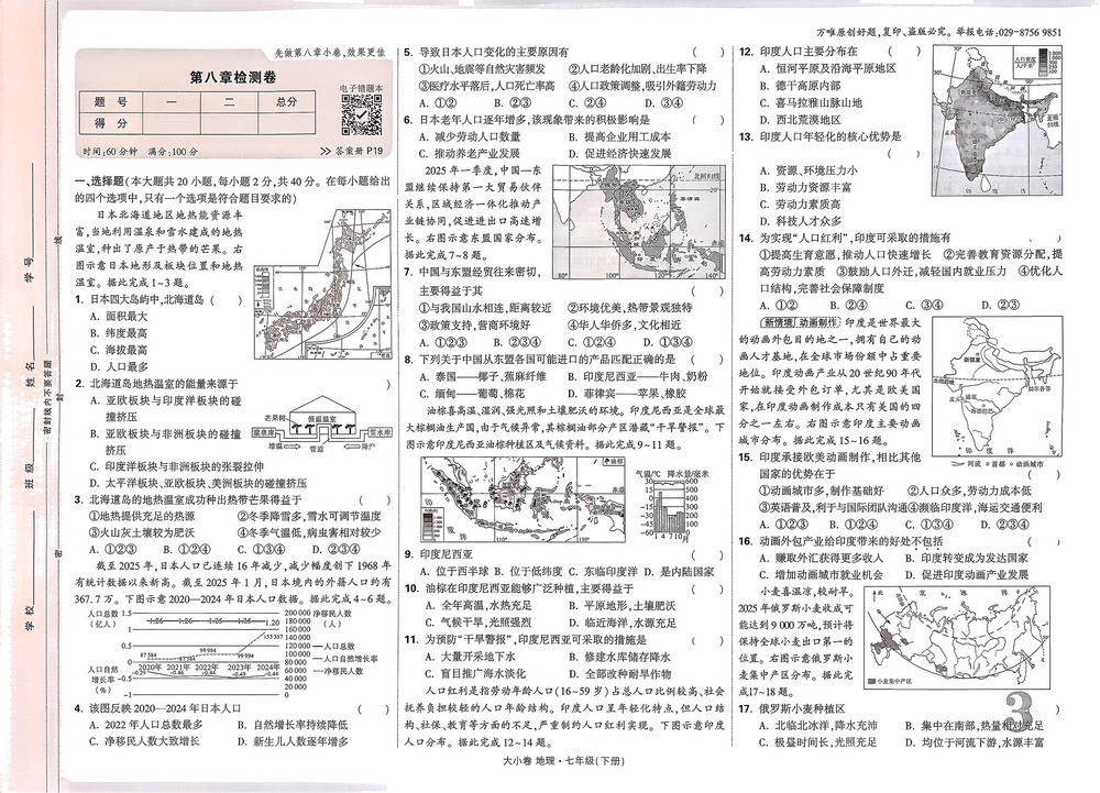 上一篇:新教材人教版七年级下册地理第八章测试卷三