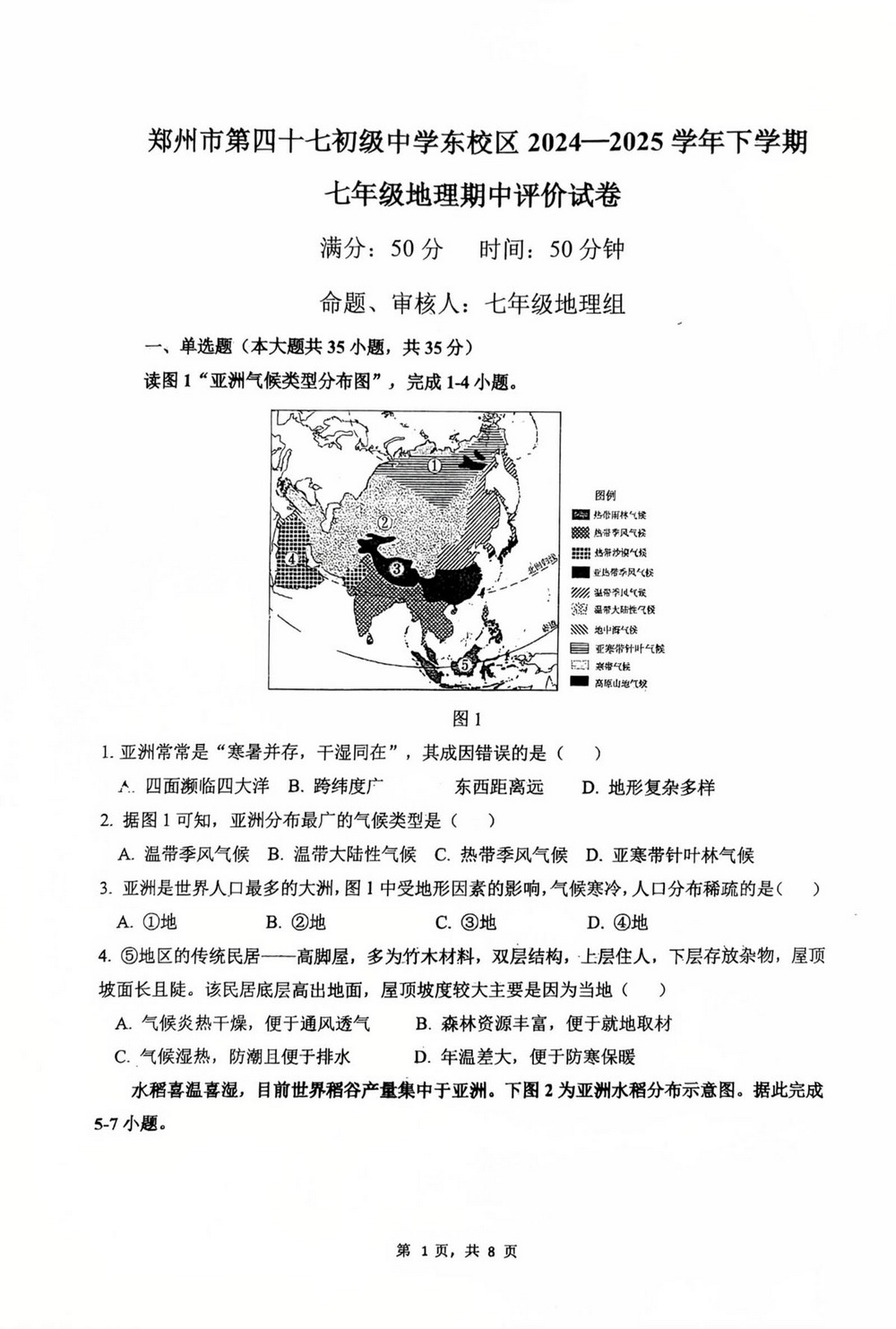上一篇:天津市部分区2024-2025学年度七年级第二学期地理期中试卷