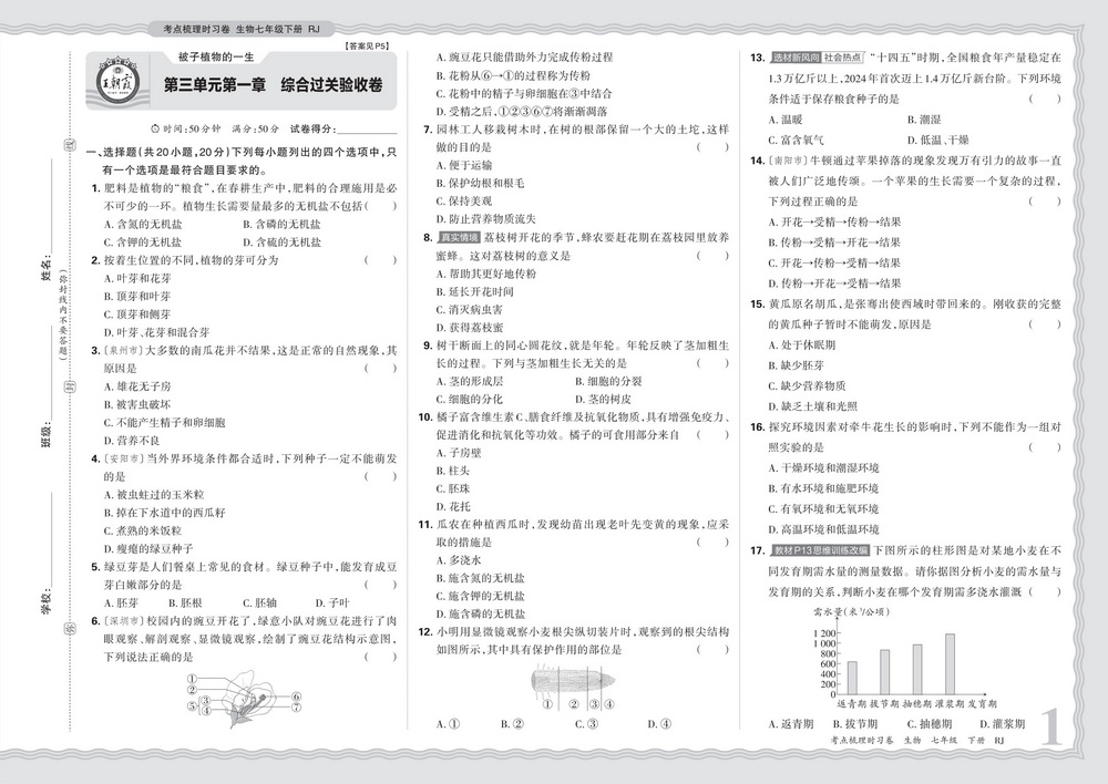 上一篇:新教材人教版七年级下册生物第三单元第一章测试卷四