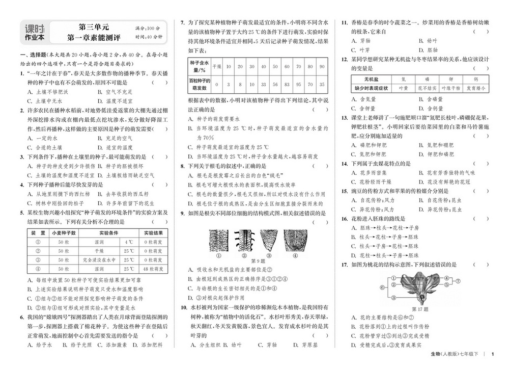 上一篇:新教材人教版七年级下册生物第三单元第一章测试卷五