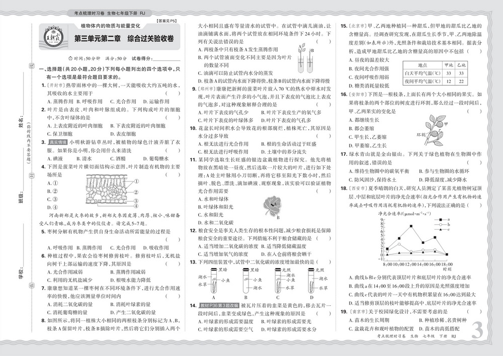 时间:120分钟 / 总分:120分/ 栏目:七年级地理生物2026-04-20 20:17:44