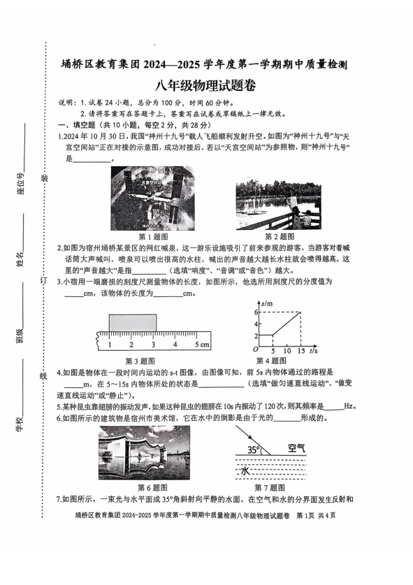 安徽省宿州市埇桥区2024-2025学年八年级上学期11月期中物理试题