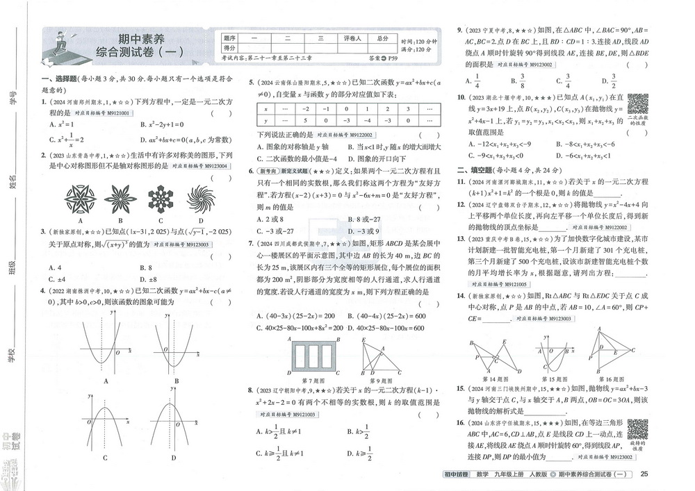 人教版九年级上册数学期中测试卷三