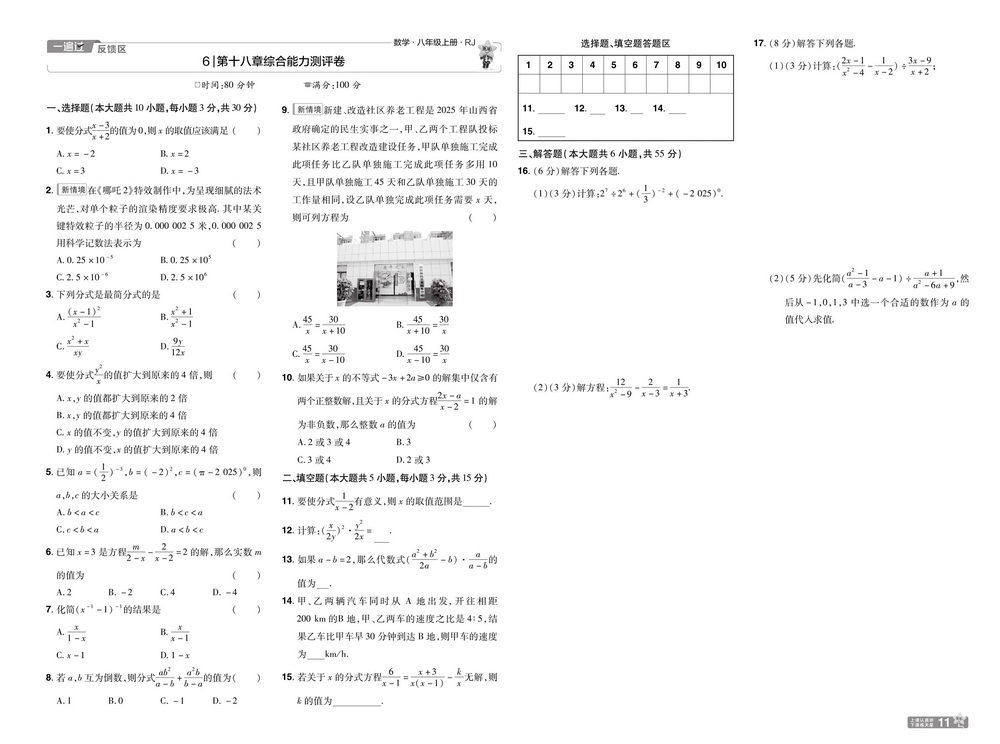 上一篇:新教材人教版八年级上册数学第十八章测试卷四