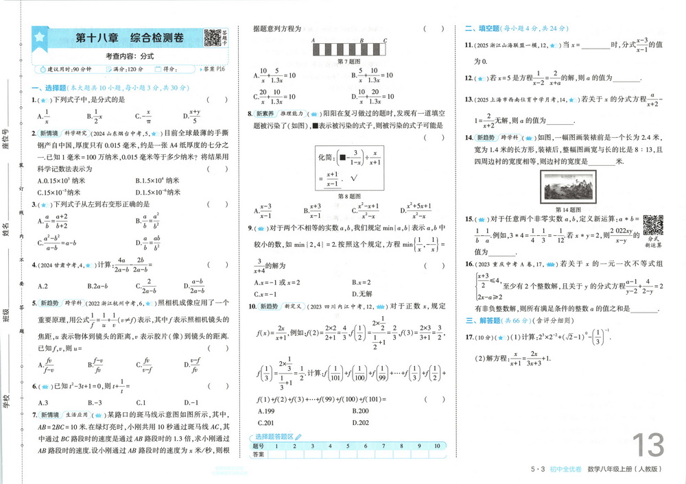 新教材人教版八年级上册数学第十八章测试卷十三