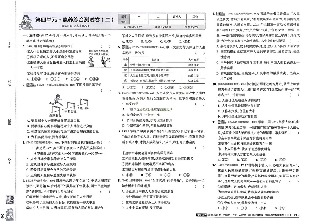 上一篇:新教材人教版七年级上册道法第三单元测试卷六