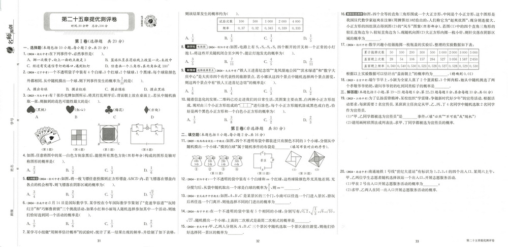 上一篇:人教版九年级上册数学第二十五章测试卷六