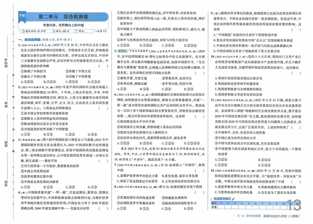 上一篇:人教版九年级下册道德与法治第二单元测试卷四