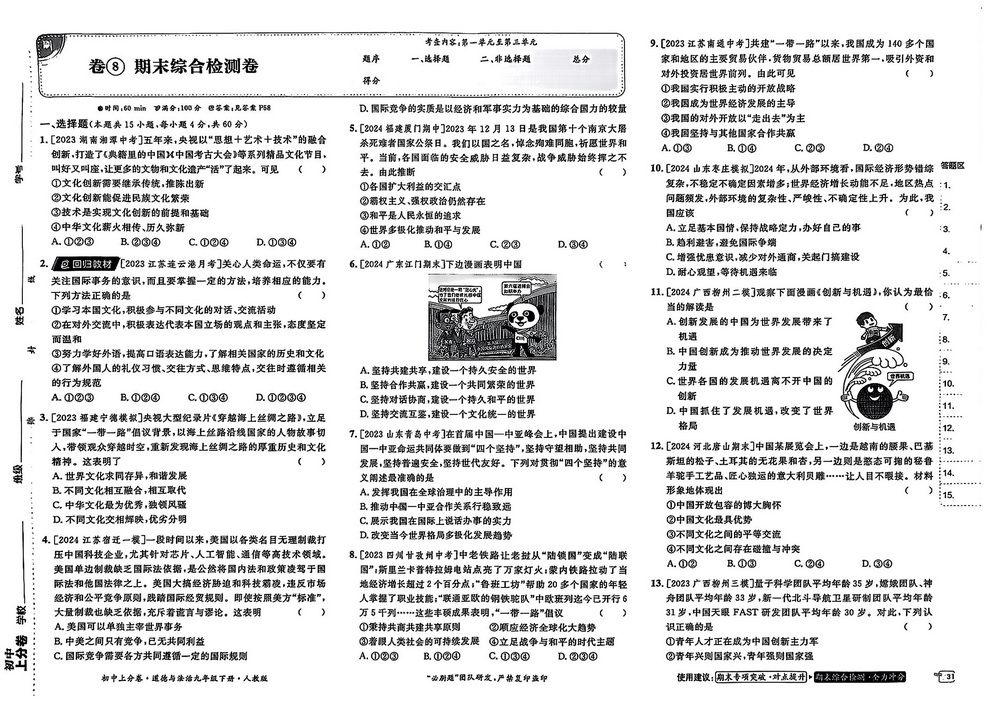 上一篇:人教版九年级下册道德与法治期末测试卷六