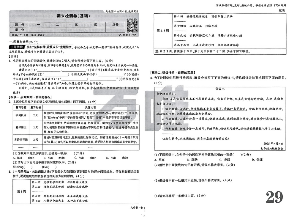 上一篇:新教材人教版七年级上册语文期末测试卷六