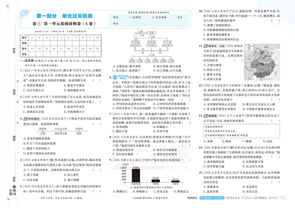 新教材人教版七年级下册历史第一单元测试卷一