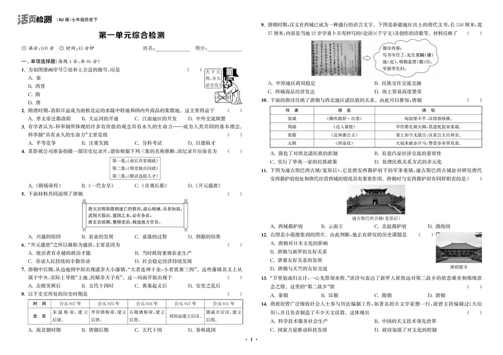 上一篇:新教材人教版七年级下册历史第一单元测试卷七