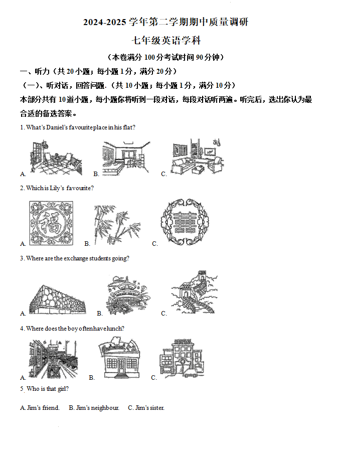 上一篇:江苏省常州市2024-2025学年七年级下学期期中考试英语试卷