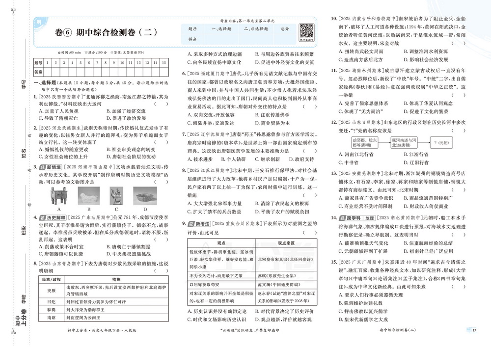 新教材人教版七年级下册历史期中测试卷四