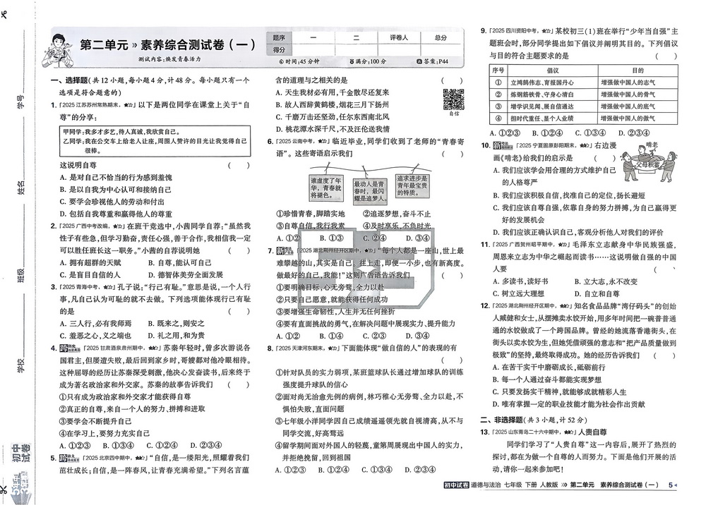 新教材人教版七年级下册道德与法治第二单元测试卷九