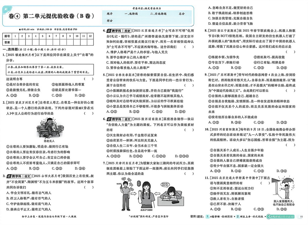 新教材人教版七年级下册道德与法治第二单元测试卷七