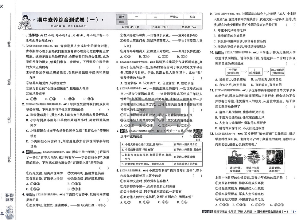 天津市五十中学2024-2025学年七年级下学期期中道德与法治试题