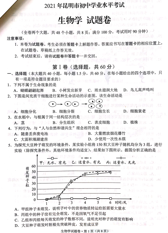 2022年山东省滨州市初中学业水平考试中考生物试卷