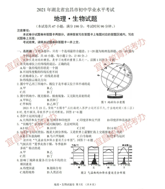 2021年湖北宜昌初中学业水平考试中考生物真题试卷