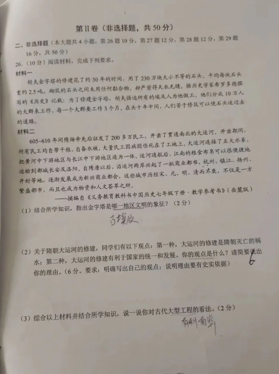 2022年湖南岳阳市初中学业水平考试历史真题试卷