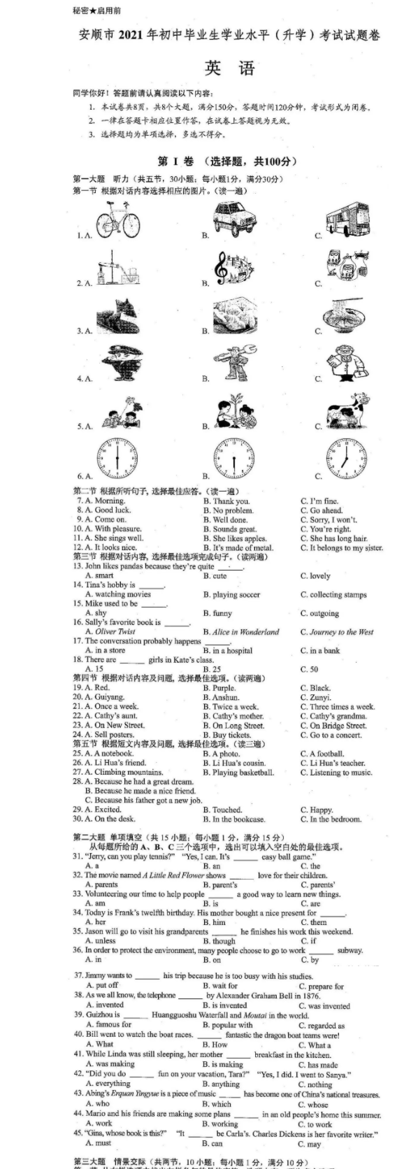 上一篇:2021年山东临沂市初中学业水平考试英语真题