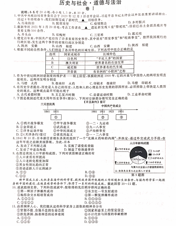 2021年浙江金华市初中学业水平考试道德与法治真题试卷
